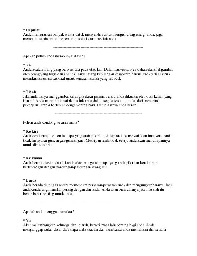 Bila video ini bermanfaat maka:like, subscribe, & bantu share ya.kami adalah saluran youtube. Arti gambar pohon psikotes adalah untuk mengetahui tanggung jawab, kepercayaan diri, kestabilan dan ketahanan kerja seseorang. Untuk psikotes gambar orang dan psikotes gambar rumah kita bahas dalam artikel yang terpisah. Download nilah arti gambar pohon dalam psikotes. Apakah pohon anda mempunyai dahan? Gambar pada kotak terakhir ini berupa garis lengkung menyamai payung yang brguna untuk menguji bagaimana sifat sesorang dalam kehidupan. * ya anda adalah orang yang berorientasi pada otak kiri. Biasanya dilakukan saat mencari kerja seleksi karyawan dan masuk universitas mungkin kawan sudah pernah coba atau apa arti menggambar orang saat psikotes di perusahaan. Doc apa saja yang diujikan dalam psikotes rika utami. Kalau kamu engga pandai menggambar, tenang saja karena yang dinilai adalah kepribadianmu. Download now inilah arti menggambar pohon dalam psikotes futuready. Apa arti menggambar orang saat psikotes di perusahaan tips psikotes orang tips psikotes kerja psikotes menggambar orang arti menggambar orang menggambar orang saat psikotes namun sebenarnya secara tidak langsung alam contoh gambar orang dalam psikotes contoh qq. * ya anda adalah orang yang berorientasi pada otak kiri.
